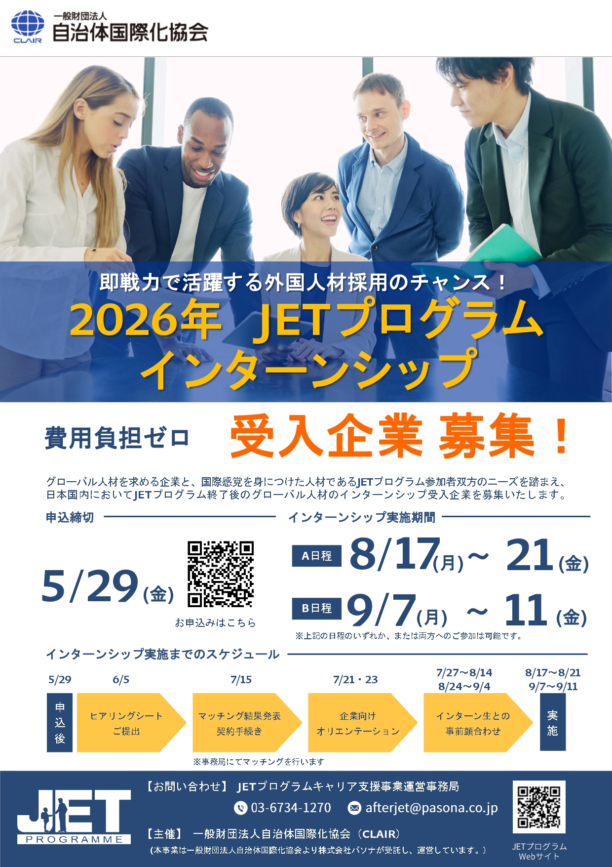 ※2026年JETプログラムインターンシップ受入企業募集のご案内チラシはこちら