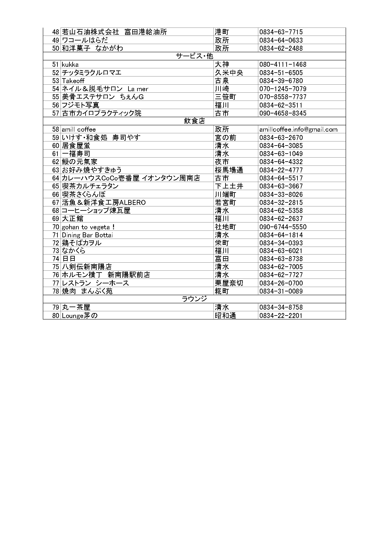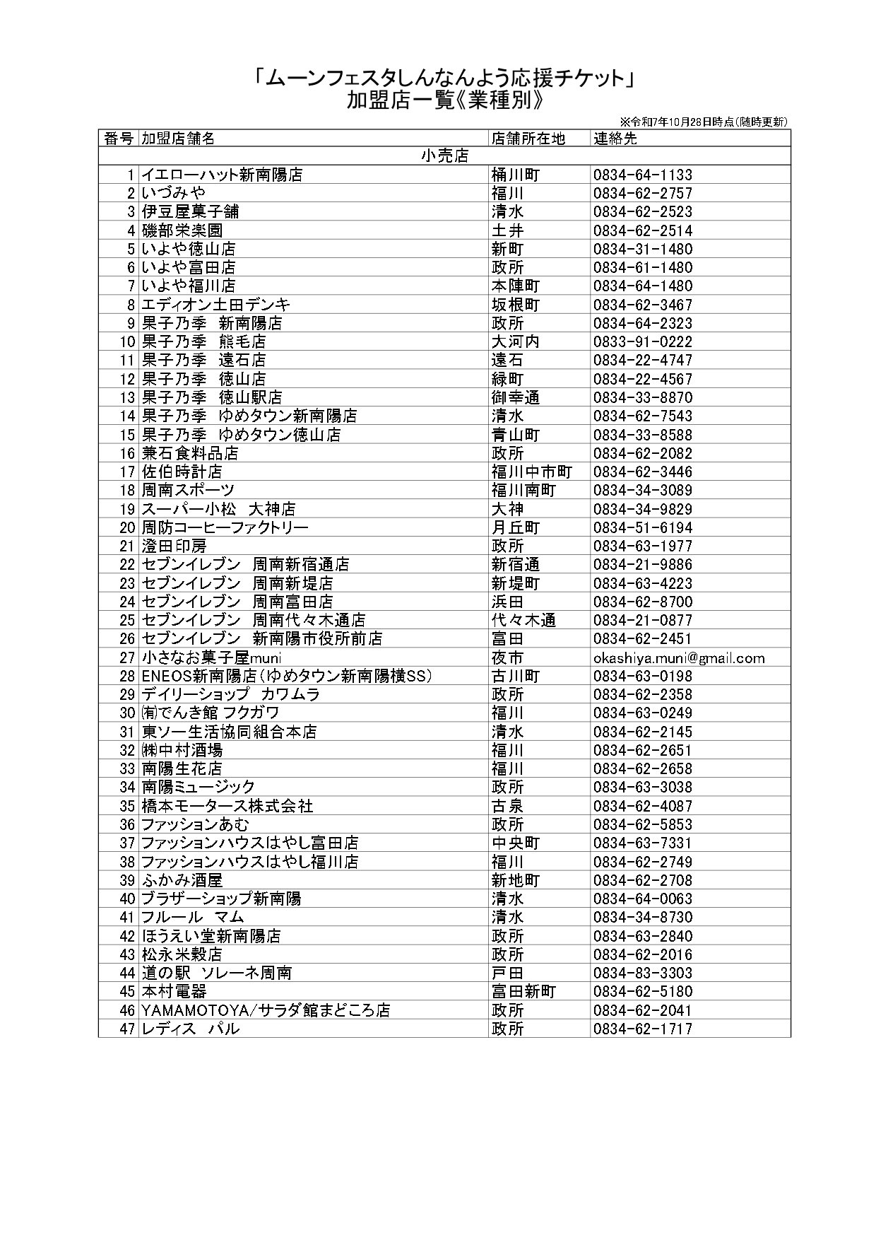 ムーンフェスタしんなんよう応援チケット加盟店一覧
