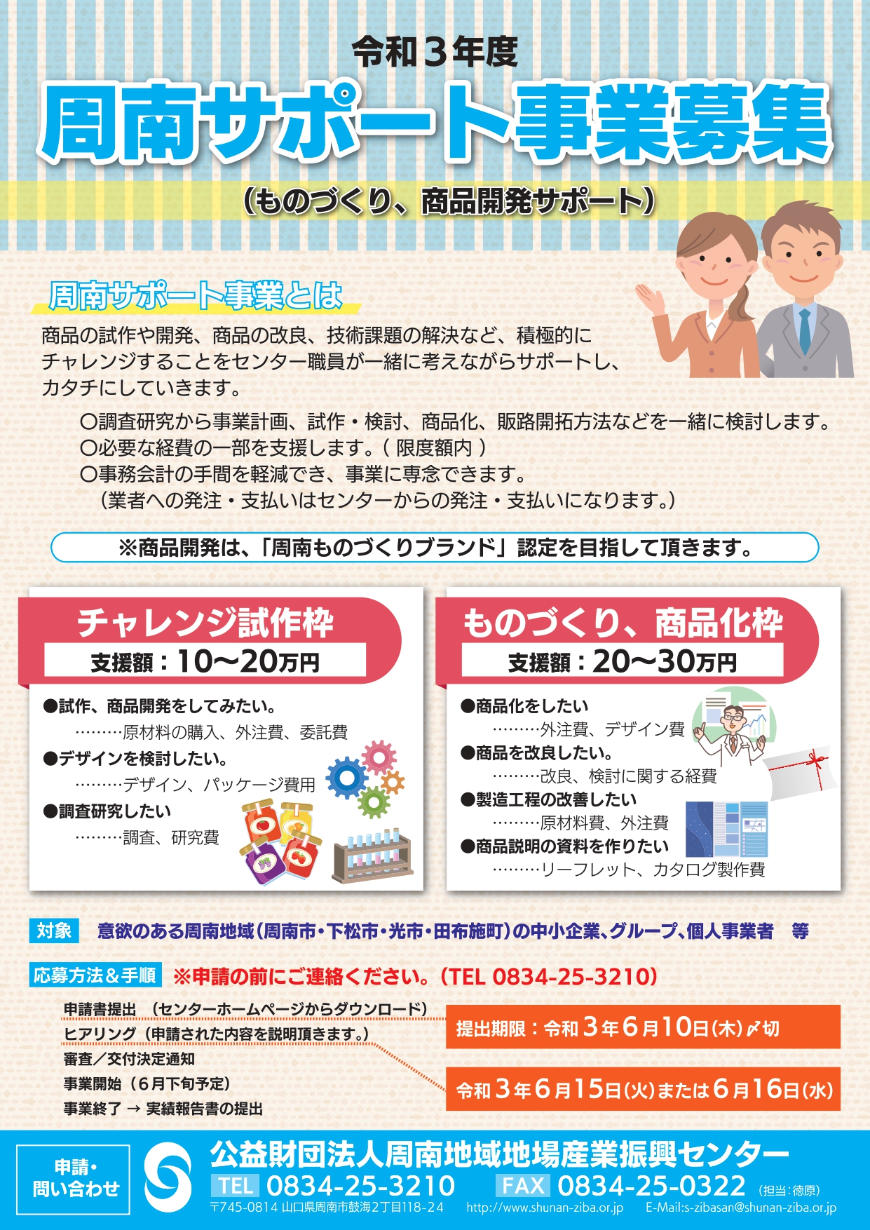 ※商品開発は「周南ものづくりブランド」認定を目指して頂きます。