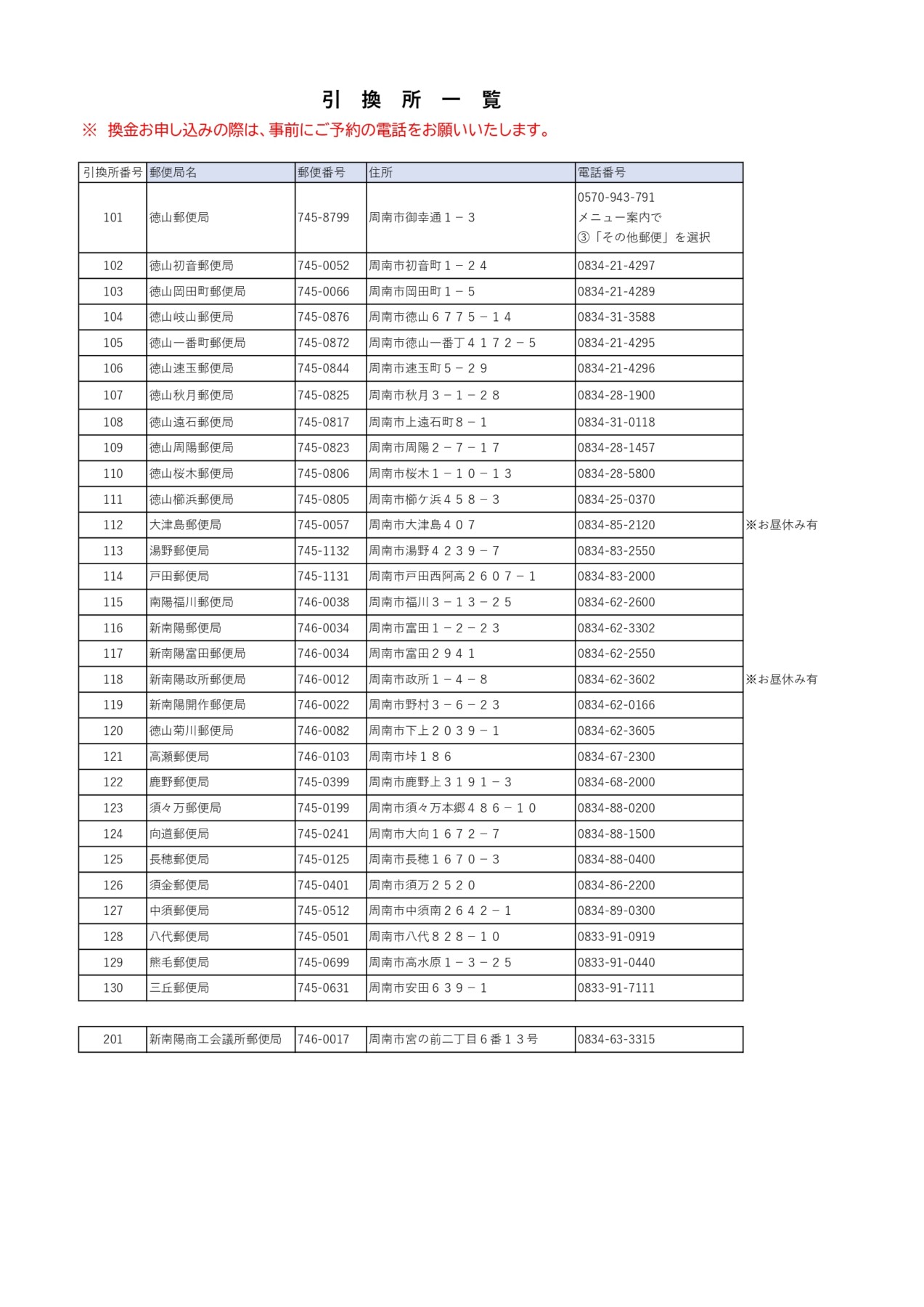 【プレミアム付商品券】引換所連絡先 2026年4月7日 新着情報, その他 引換所一覧PDF 地域密着!新南陽地域の事業者様のお力になります! 新南陽商工会議所には、経営者や個人事業主の方が安心して利用できるサービスが多くあります。個人事業主の方でも入会できます。まずはお気軽にお問い合わせください。 入会についてはこちら 新南陽商工会議所の職員が、新南陽地域の皆様のお力になります。 中小企業支援に関することはお気軽にお問い合わせください! 0834-63-3315 平日8:45〜17:30 お問い合わせ・資料請求 メールは24時間受け付けております。 ソーシャルボタン Tweet こちらの記事も読まれています。新南陽商工会議所報2024.9No388 2024年9月号 「令和6年能登半島地震」に対する災害義援金のご協力方お願いについて 「令和6年能登半島地震」に対する災害義援金のご協力方お願いについて 本募金活動にご協力いただけます場合は、下記資料をご確認いただき2月21日(水)までに当商工会議所宛にお申込・ご送金くださいますようお願い致します。 「令和6年能登半島地震」に対する災害義援金のご協力方お願いについて 「令和6年能登半島地震」義援金申受要領 令和6年能登半島地震振込連絡票 […]6月専門家個別相談会 専門家個別相談会 新南陽商工会議所では各種専門家の先生をお呼びして個別相談会を開催します。 全てWEB会議システム(Google Meet または […]購入型クラウドファンディング「頑張るお店応援プロジェクト」の参加店舖募集開始 購入型クラウドファンディング「頑張るお店応援プロジェクト」の参加店舖募集について 山口県では、県内店舗の資金支援と消費需要の喚起を図るため、購入型クラウドファンディング「頑張るお店応援プロジェクト」を実施します。 このプロジェクトは、参加店舗への支援を申し込んだ方に、そのお店で使える50%のプレミアム付きチケット「元気にやまぐち券」を発行するもので、手数料等、店舗の費 […]周南市跨道橋ネーミングライツパートナーの募集について 周南市跨道橋ネーミングライツパートナーの募集について 市が管理する跨道橋について、民間の資金を活用して道路施設の持続可能な維持管理を行うとともに、民間の創意工夫による地域活動、社会貢献の場を提供するため、愛称を命名する権利(ネーミングライツ)を付与するパートナーを募集します。 ■パートナーのメリット ①企業等を幅広くPRすることができる。 […] 前後の記事 前の記事 【県連】奨学金返還補助制度の実施に係る寄附募集について 次の記事 【県経営金融課】熱中症対策のための高齢者への見守り・声かけについて